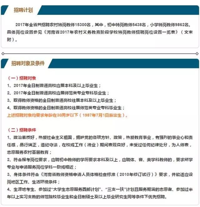 河南省2017年农村义务教育阶段学校特岗教师招聘办法